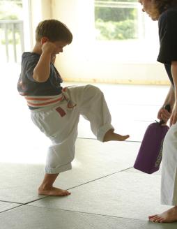 In our Tigers class, we strive to teach skills through developmental activities based on the Okinawan martial arts. Instructors use drills designed to enhance motor skills and coordination. Tiger students participate in activities and games to promote self-discipline and sportsmanship, while being challenged appropriately. Emphasis is placed on effort and achievement.